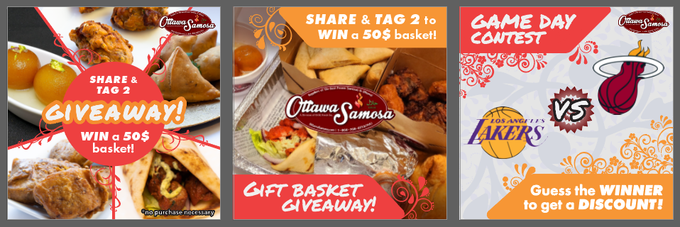I further developed these concepts and established a more solid style. And provide multiple options for the client to choose which they felt was best. The middle image was an attempt to make use of a photo of the actual gift basket the winner would receive, meant to be replaced with a more professional photo. However it did not come in time, so this was the alternative.