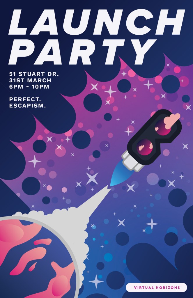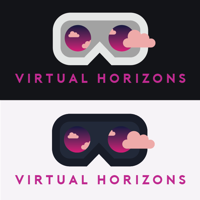 I feel that logos are really import, if you can nail down the finite super-atomic small sized concept of a brand. The rest springs forth pretty easily! So I started to put together a logo. I created a couple different versions using the icons of the VR headset, horizon lines, gradients, clouds, and rockets. But eventually this is what I settled on.