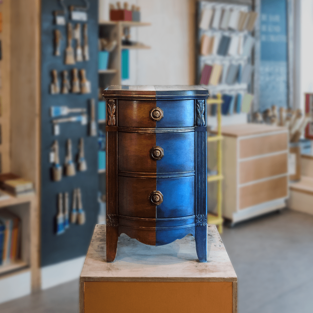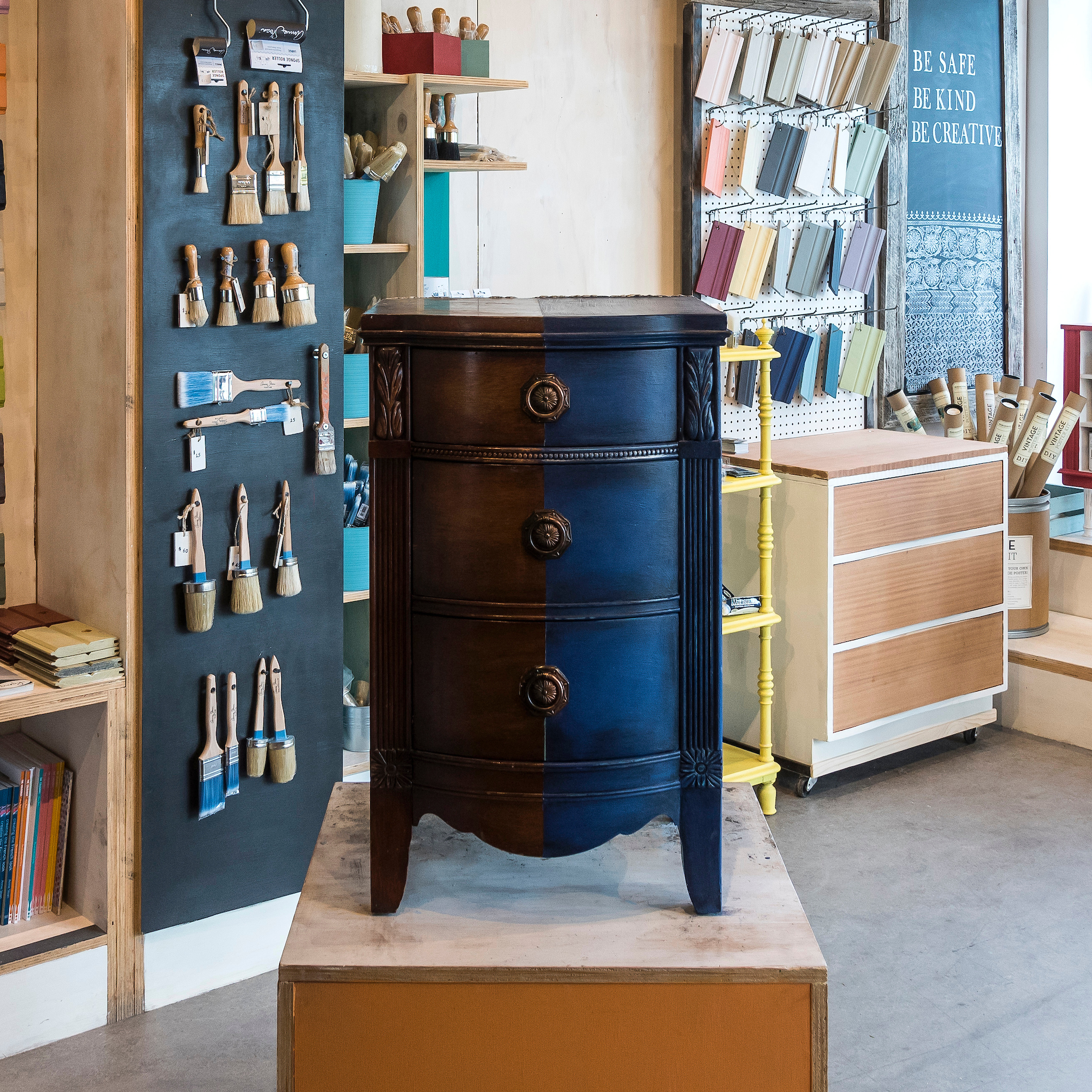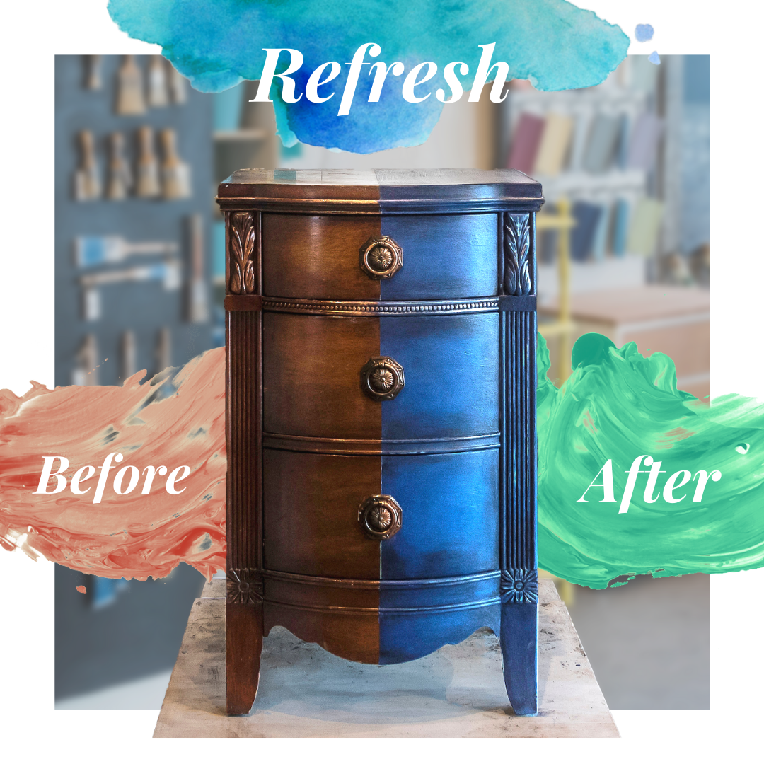 So I got to work creating some drafts as I was short on time, but during the opening meeting I described the layouts and composition. The layout for the Chalk Paint Ad would be featuring a painted furniture piece showing a before and after with basic text that expresses the idea of transformation. The layout for the One Stop Shop Ads would be a mosaic of images showing the three main varieties of products our client sold as well as some supporting central text.